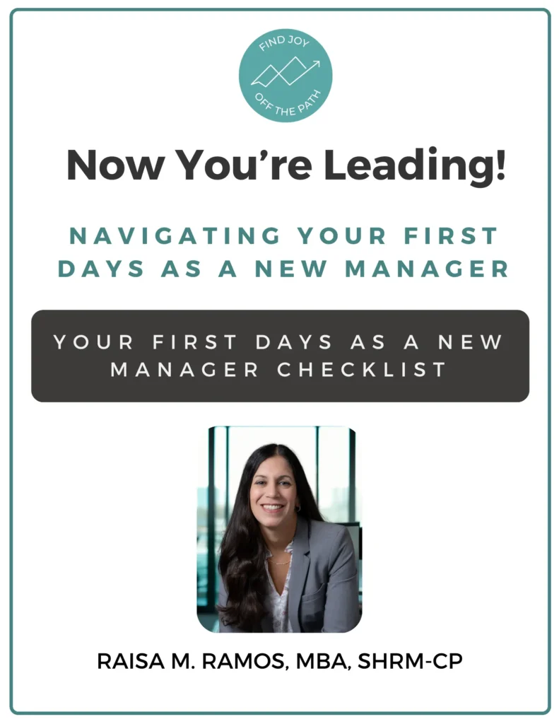 In Now You’re Leading! Navigating Your First Few Days as a New Manager, Raisa M. Ramos—Engineer-turned-HR Leader and founder of Find Joy Off The Path, LLC—shares a roadmap to help new managers grow into confident leaders people genuinely want to follow.
